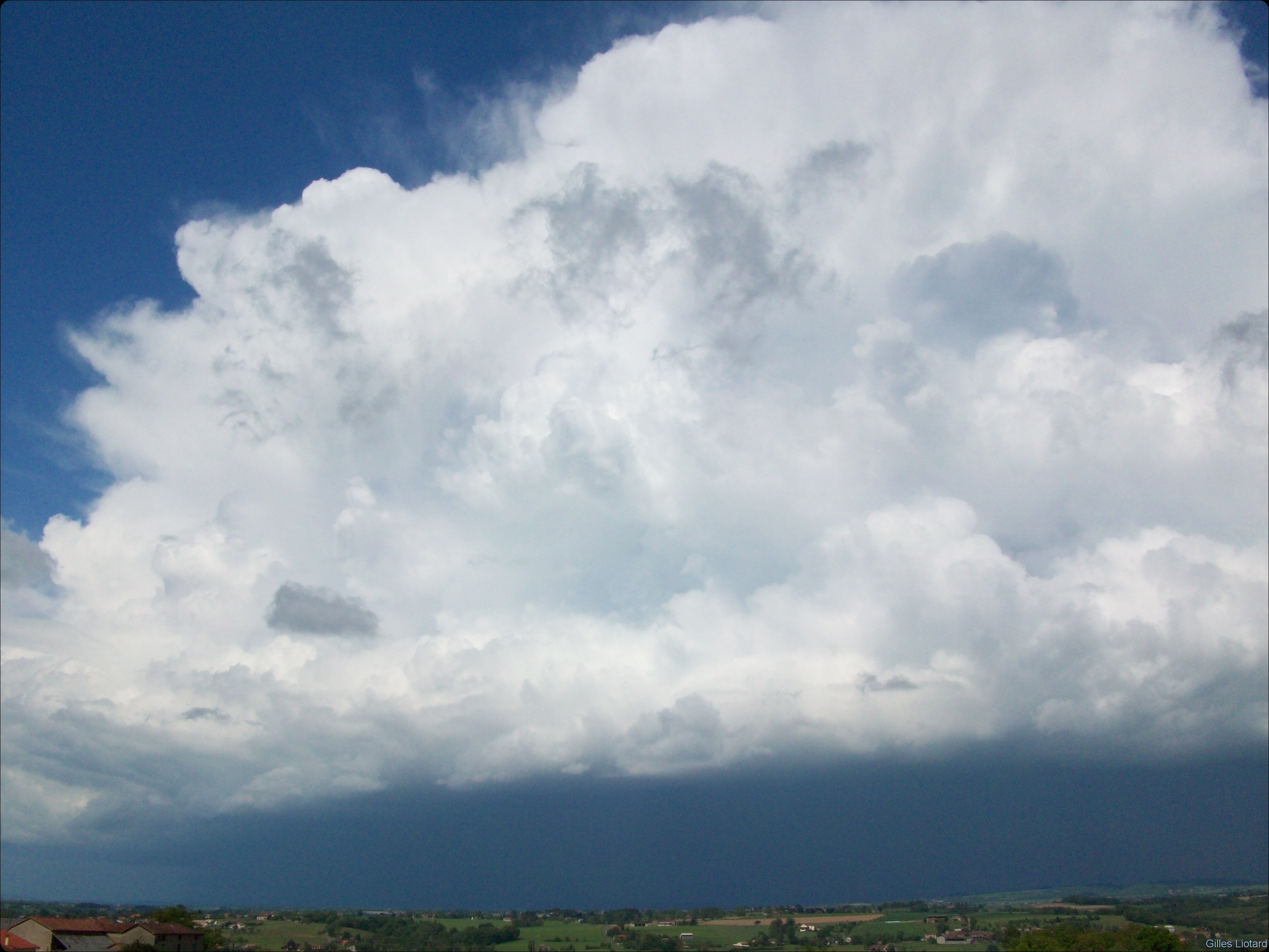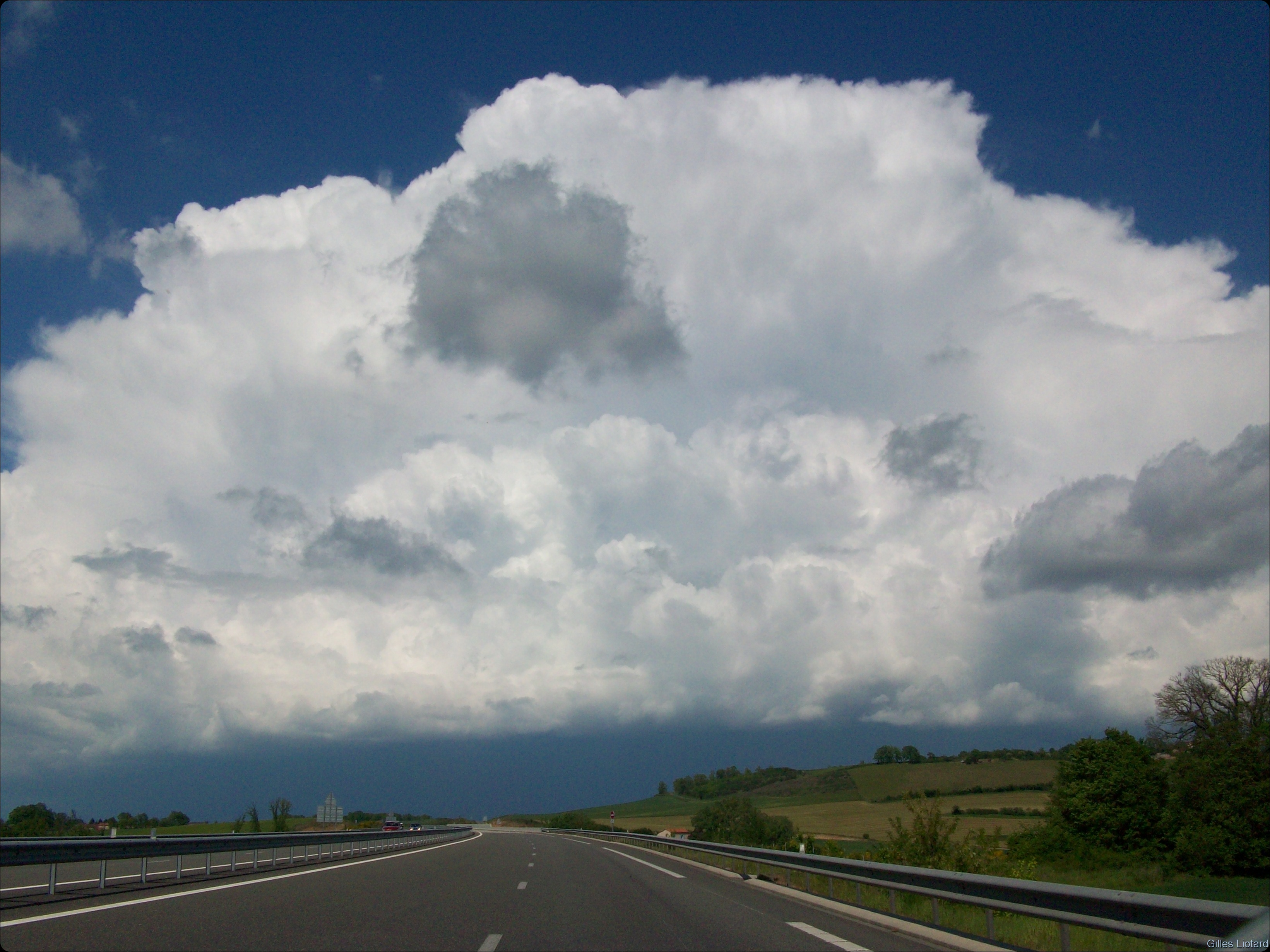 L'orage se dressait sur Rodez et sa campagne, bien plus loin, et le vent soufflait de secteur... Nord-Est ! Chose très rare, l'orage se déplaçait vers l'Ouest! Si c'est pas parfait ça ?!! en fait c'est une situation idéale pour moi puisqu'elle permet de rester à l'avant de l'orage tout l'après-midi sans se prendre une goutte (ou presque!), et en plus en comptant sur l'autoroute pour me déplacer rapidement et ... en ligne droite, et ... gratuite!!!! wahaaaahhaaaaaah (ça change des routes tordues des Alpes et d'Auvergne! )