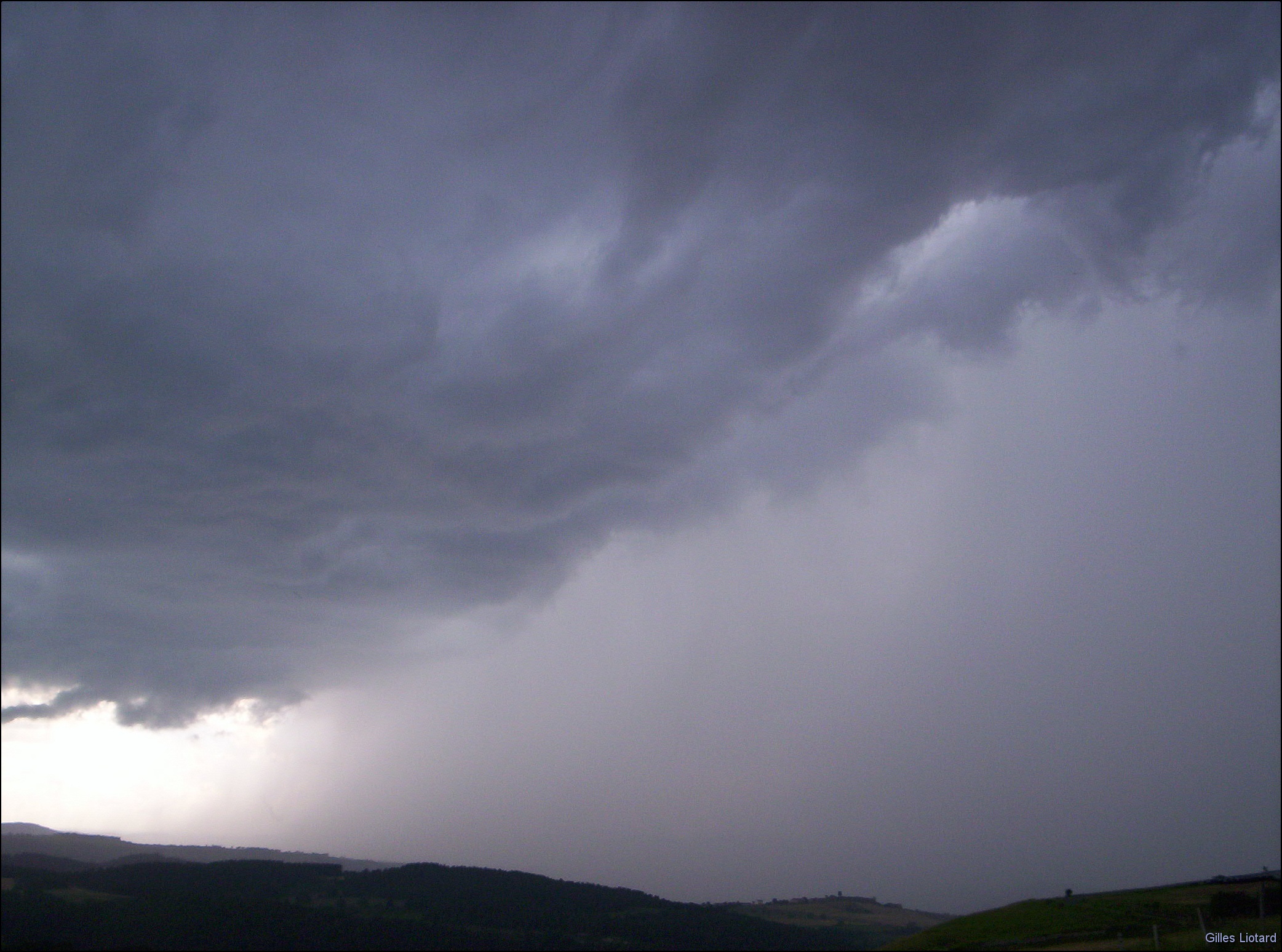 Cette journée du 29 juin le temps avait été chaud, j'entends encore les tracteurs s'activer pour ramasser les barres de foin avant que la pluie n'arrive. Je n'ai malheureusement pas vu se former cet orage, dommage car c'est un beau petit monstre de nuages et de tourbillons! 17h, je rentre chez moi ayant fané tout l'après-midi en me disant: "Mais il va avancer ce put... de tracteur !! Là on a un monstre qui approche et j'aimerais quand même le voir de près! grrrrrr...." C'est le genre de moments à vite oublier dans la vie d'un chasseur d'orages, c'est la même chose que lorsque vous êtes coincé dans votre voiture à un feu rouge ou à la fin d'une longue file de véhicules qui ne bouge pas de place alors que le plus bel orage de votre vie est en train de vous narguer dans le rétro!!!
